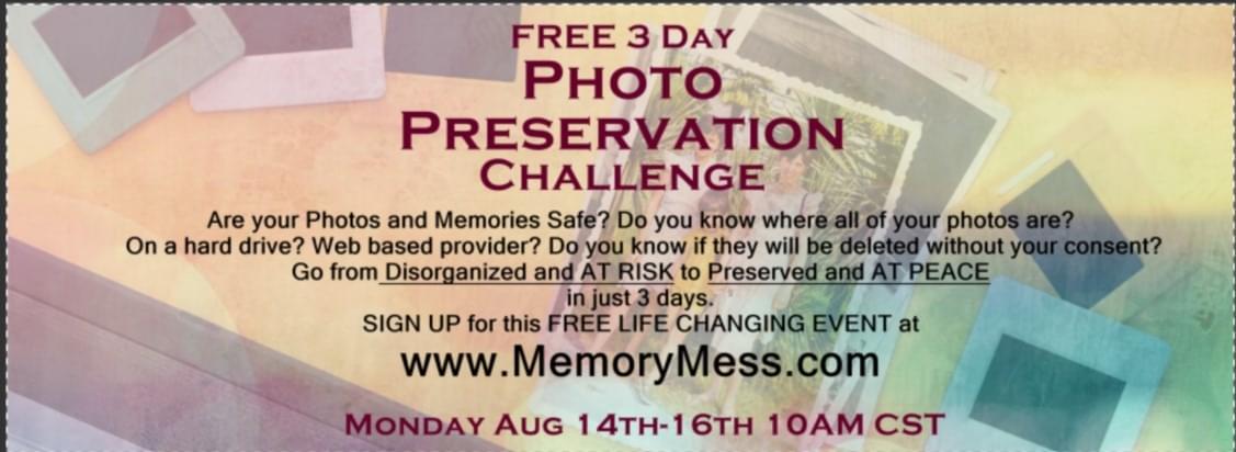 Join me for the FREE PHOTO PRESERVATION CHALLENGE.
